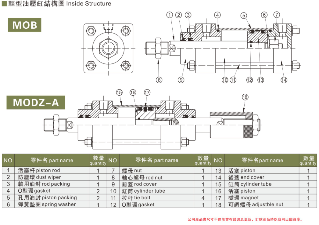 MOB 轻型油缸